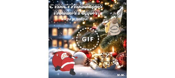 Анимированная открытка "с наступающим новым годом мира и добра"