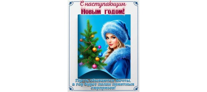 Открытка "С наступающим Новым годом! Пусть сбываются мечты, а год будет полон приятных сюрпризов."