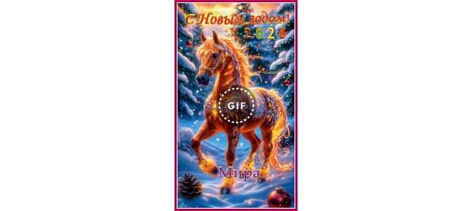 Анимированная открытка "С Новым годом! 2026 Мира Счастья Достатка"