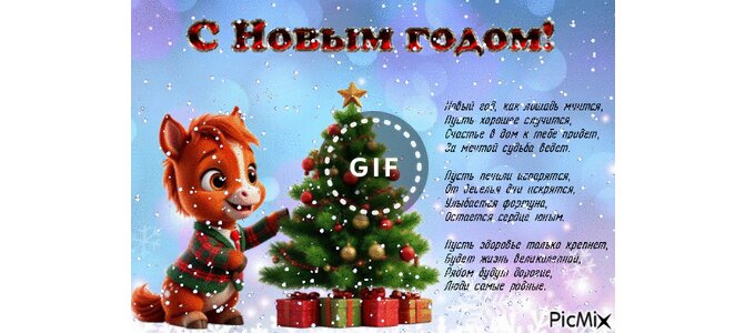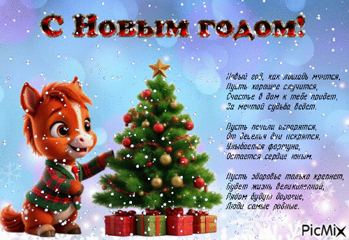 Анимированная открытка "С Новым Годом. Год Лошади"