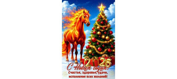 Открытка "С НОВЫМ ГОДОМ! СЧАСТЬЯ, ЗДОРОВЬЯ, УДАЧИ, ИСПОЛНЕНИЯ ВСЕХ ЖЕЛАНИЙ!"