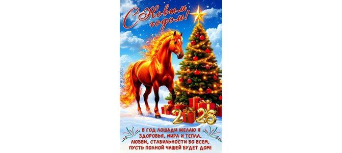 Открытка "С НОВЫМ ГОДОМ! В ГОД ЛОШАДИ ЖЕЛАЮ Я ЗДОРОВЬЯ, МИРА И ТЕПЛА, ЛЮБВИ, СТАБИЛЬНОСТИ ВО ВСЕМ, ПУСТЬ ПОЛНО"