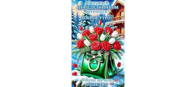 Открытка "С ПЕРВЫМ ПОНЕДЕЛЬНИКОМ ВЕСЕННИМ, ДОБРОЕ УТРО, УДАЧИ НП ВСЮ НЕДЕЛЮ!"