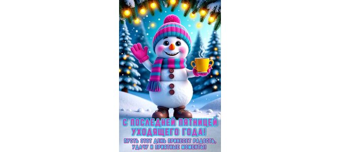 Открытка "С ПОСЛЕДНЕЙ ПЯТНИЦЕЙ УХОДЯЩЕГО ГОДА! ПУСТЬ ЭТОТ ДЕНЬ ПРИНЕСЕТ РАДОСТЬ, УДАЧУ И ПРИЯТНЫЕ МОМЕНТЫ!"