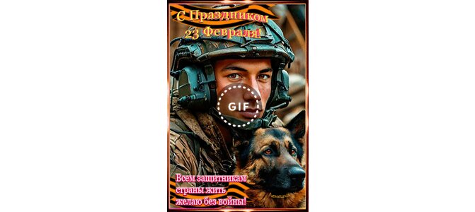 Анимированная открытка "С Праздником 23 Февраля! Всем защитникам страны жить желаю без войны!"