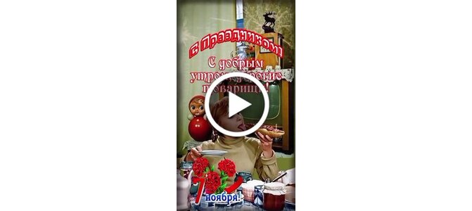 С праздником! 7 ноября С добрым утром дорогие товарищи! Давайте будем помнить, ценить и уважать наше прошлое! Живите, радуйтесь, любите! Пусть мир царит в Ваших семьях! С праздником дорогие товарищи! Ураа!