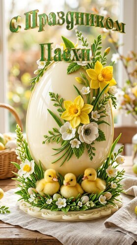 Пасхальный декор в виде яйца и корзинки с цыплятами