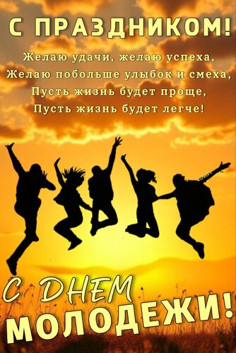 С праздником! Желаю удачи, желаю успеха, желаю побольше улыбок и смеха. Пусть жизнь будет проще, пусть жизнь будет легче! C днем молодежи!