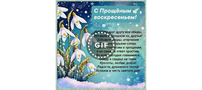 С Прощённым воскресеньем! Простим друг другу все обиды, оставим в прошлом их, друзья! Забудьте ссоры, огорчения да злые, горькие слова. Родных попросим о прощении, а их самих в ответ простим. Во всем сегодня повинимся, обиду в сердце не таим. Красоты, любви, добра! Радости, душевного тепла! Успехов в честь святого дня!