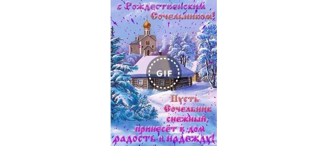 Анимированная открытка "С Рождественским сочельником! Пусть сочельник снежный принесёт в дом радость и надежду!"