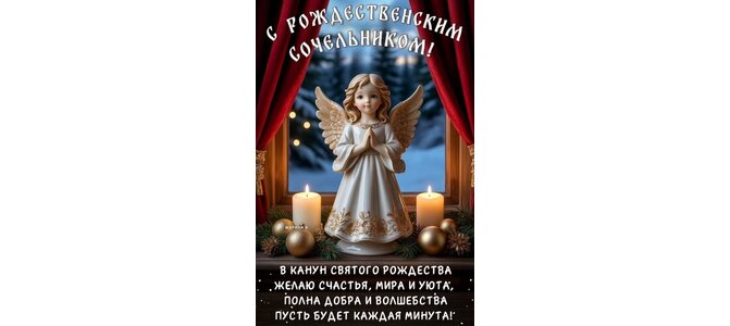 Открытка "С Рождественским сочельником! В канун святого Рождества желаю счастья, мира и уюта."