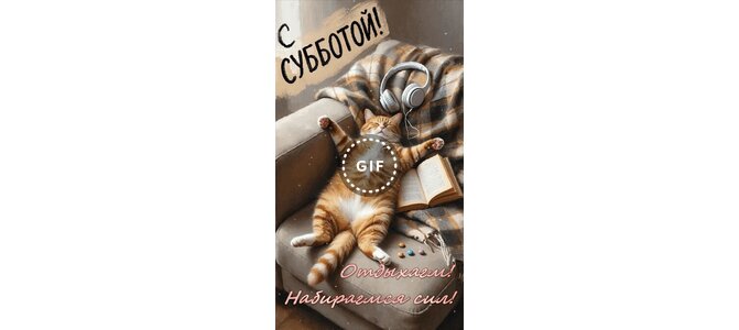 Анимированная открытка "С субботой! Отдыхаем! Набираемся сил!"