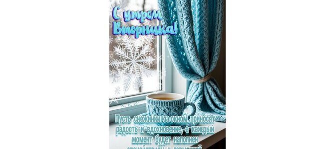 Открытка "С утром вторника! Пусть снежинки за окном приносят радость и вдохновение, а каждый момент будет..."