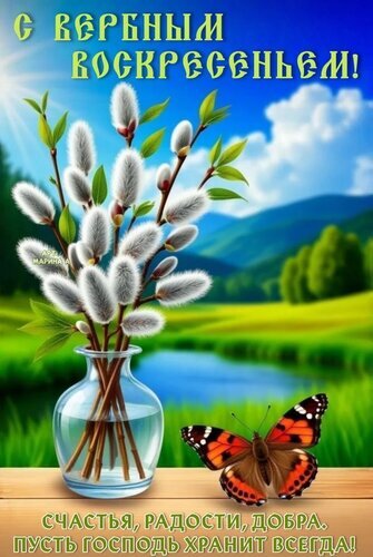 Открытка "С ВЕРБНЫМ ВОСКРЕСЕНЬЕМ! СЧАСТЬЯ, РАДОСТИ, ДОБРА. ПУСТЬ ГОСПОДЬ ХРАНИТ ВСЕГДА!"