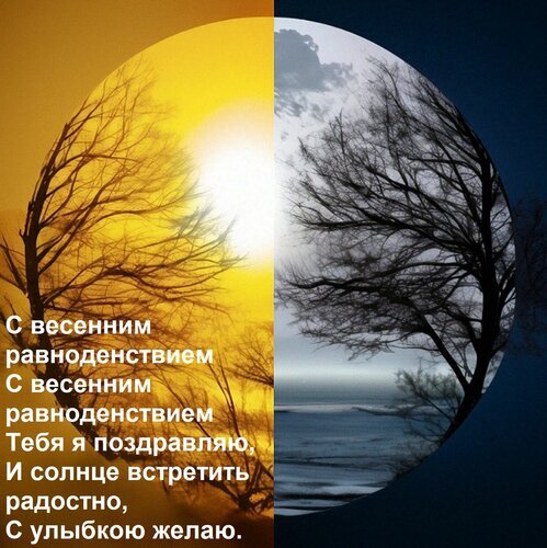 Открытка "С весенним равноденствием С весенним равноденствием Тебя я поздравляю, И солнце встретить радостно,"