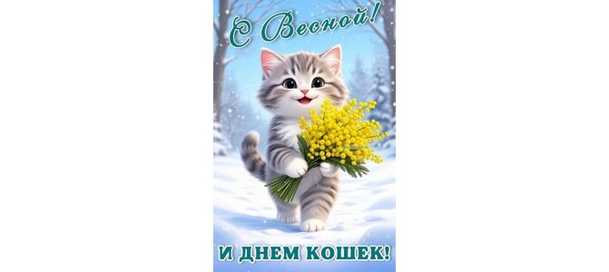 Открытка "С ВЕСНОЙ! И ДНЕМ КОШЕК!"