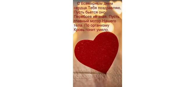 Открытка "С Всемирным днем сердца тебя поздравляю, пусть бьется оно перебоев не зная. "
