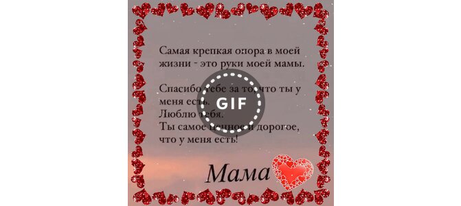 Анимированная открытка "Самая крепкая опора в моей жизни - это руки моей мамы. Спасибо тебе за то, что ты у меня есть. Люблю"