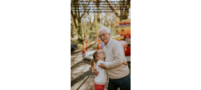 Теги:самый замечательный дедушка на свете, поздравляю я тебя с праздником тебя а желаю я тепла, счастья и здоровья, проводить свой каждый день с радостью, любовью, никогда не хмуриться, больше улыбаться, и таким же добрым дедом оставаться