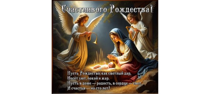 Счастливого Рождества! Пусть Рождество, как светлый дар, несёт уют, покой и жар. Пусть в доме радость, в сердце свет, и счастья — на сто лет!