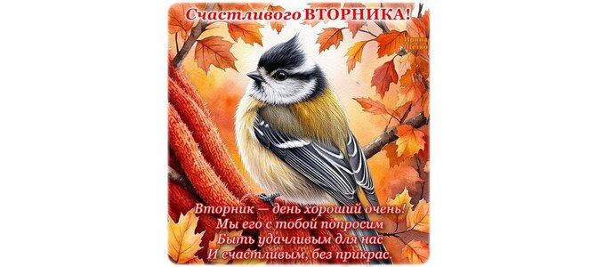 Счастливого вторника! Вторник — день хороший очень! Мы его с тобой попросим быть удачливым для нас и счастливым, без прикрас.