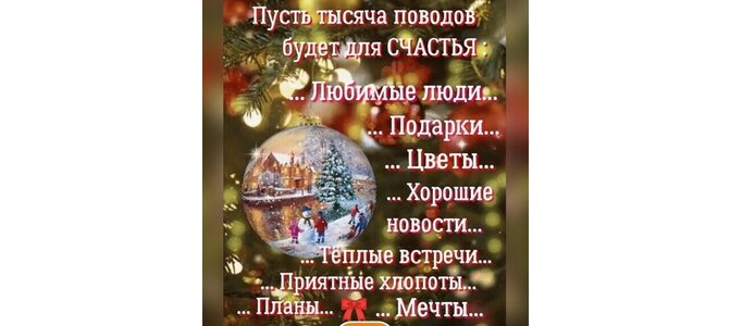 Пусть тысяча поводов будет для счастья: любимые люди, подарки, цветы, хорошие новости, теплые встречи, приятные хлопоты, планы, мечты...