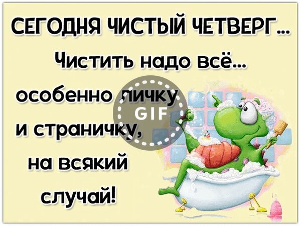 Анимированная открытка "Сегодня Чистый Четверг... Чистить надо всё... особенно личку и страничку, на всякий случай!"