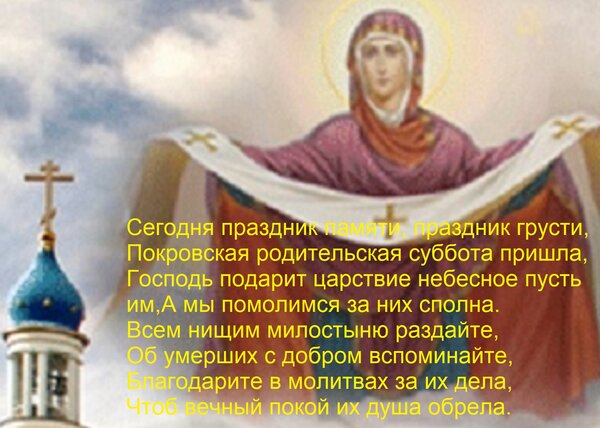 Открытка "Сегодня праздник памяти, праздник грусти, Покровская родительская суббота пришла, Господь подарит ца"