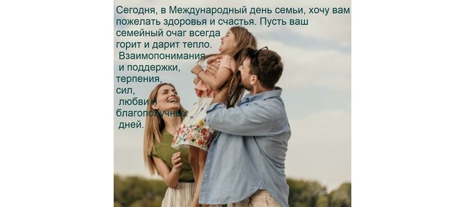 Открытка "Сегодня, в международный день семьи, хочу вам пожелать здоровья и счастья."