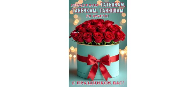 Открытка "СЕГОДНЯ ВСЕМ ТАТЬЯНАМ, ТАНЕЧКАМ, ТАНЮШАМ ПО БУКЕТУ! С ПРАЗДНИКОМ ВАС!"