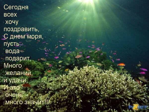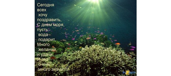 Сегодня всех хочу поздравить, с днем моря, пусть вода подарит, много желаний, и удачи, и это очень много значит!