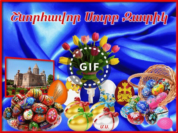 Анимированная открытка "Шноравор Сурб Затик - Поздравляю со Святой Пасхой!, (Մ․Ս․), (М.С.)"
