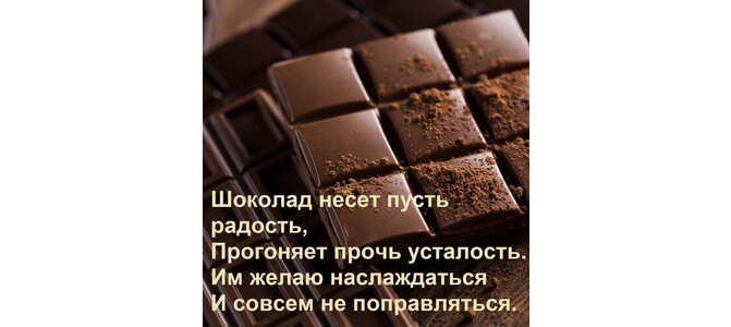 Открытка "Шоколад несет пусть радость, Прогоняет прочь усталость. Им желаю наслаждаться И совсем не поправлять"