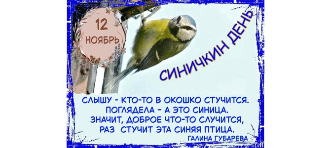Теги:12 ноября, синичкин день, птицы, братья наши меньшие, праздник, день, покормите птиц, ноябрь, синица, ольга марк