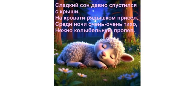 Теги:сладкий сон давно спустился с крыши, на кровати рядышком присел, среди ночи очень-очень тихо, нежно колыбельную пропел