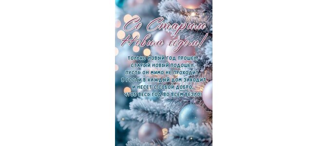 Открытка "СО СТАРЫМ НОВЫМ ГОДОМ! ТОЛЬКО НОВЫЙ ГОД ПРОШЕЛ, СТАРЫЙ НОВЫЙ ПОДОШЕЛ. ПУСТЬ ОН МИМО НЕ ПРОХОДИТ, В Г"
