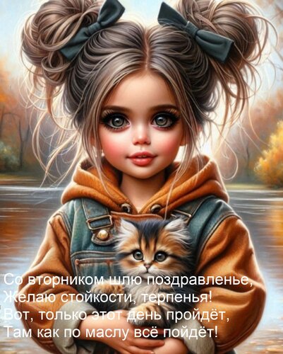 Теги:со вторником шлю поздравленье, желаю стойкости, терпенья вот, только этот день пройдёт, там как по маслу всё пойдёт
