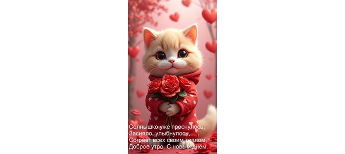 Открытка "Солнышко уже проснулось, Засияло, улыбнулось, Согреет всех своим теплом, Доброе утро. С новым днём."