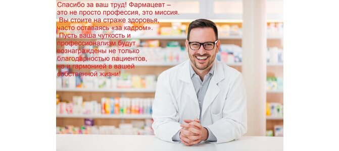 Открытка "Спасибо за ваш труд! Фармацевт – это не просто профессия, это миссия. Вы стоите на страже здоровья,"