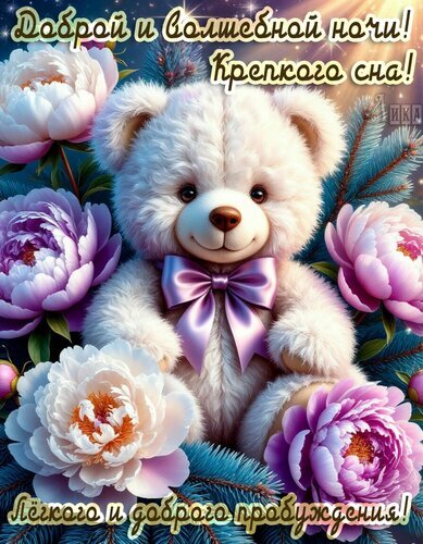Теги:спокойной ночи, ночь, доброй ночи, мишка, плюшевый мишка, игрушка, лес, сосна, пионы, цветы, крепкого сна, волшебной ночи