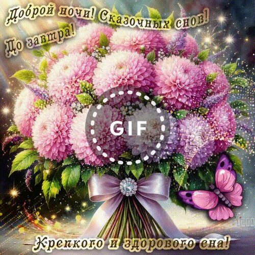 Теги:спокойной ночи, ночь, доброй ночи, гифка, анимация, красивая анимация, пожелания на каждый день, цветы, букет цветов, бабочка, крепкого и здорового сна, сказочных снов