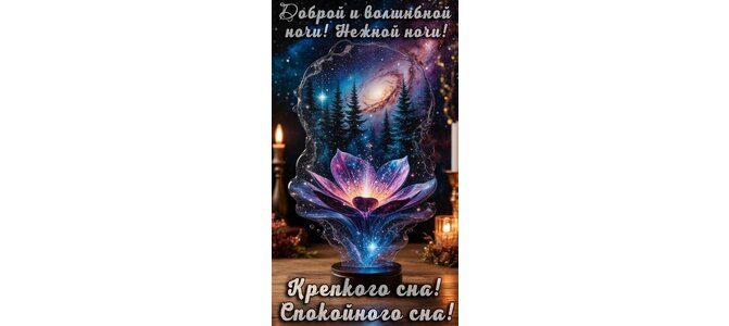 Открытка "Спокойной ночи Доброй и волшебной ночи! Нежной ночи! Крепкого сна! Спокойного сна!"