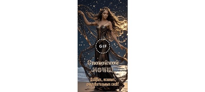 Анимированная открытка "Спокойной ночи! Добрых, нежных, очаровательных снов!"