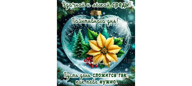 Теги:среда, дни недели, снег, зима, лес, новогодняя игрушка, красивая картинка, пожелания на каждый день, цветок, ягоды, уддачи, позитива