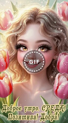 Теги:среда, дни недели, доброе утро, девушка, бабочка, цветы, тюльпаны, гифка, анимация, красивая анимация, весна, лето, добра