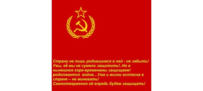 Теги:страну не лишь родившимся в ней - не забыть увы, её мы не сумели защитить но в нынешние горе-временамы защищаем родолжается война ума и жизни всплеска в стране не миновать самоотверженно её впредь будем защищать