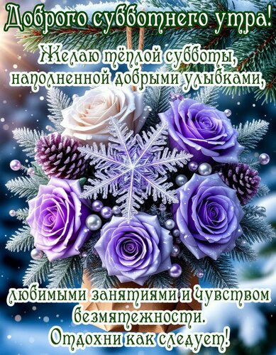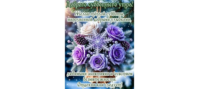 Желаю тёплой субботы, наполненной добрыми улыбками, любимыми занятиями и чувством безмятежности. Отдохни как следует!