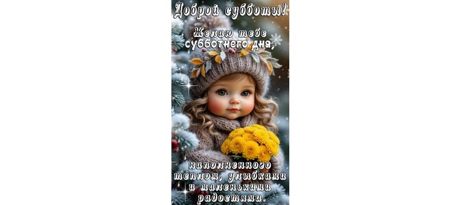 Доброй субботы! Желаю тебе субботнего дня, наполненного теплом, улыбками и маленькими радостями.