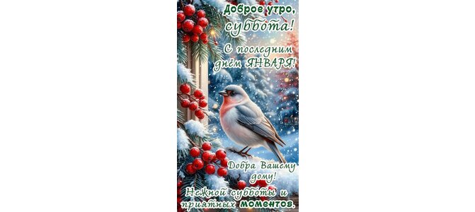 Теги:суббота, дни недели, птичка, зима, снег, утро, ягоды, позитива, добра, нежной субботы, добра вашему дому, приятных моментов, с последним днем января