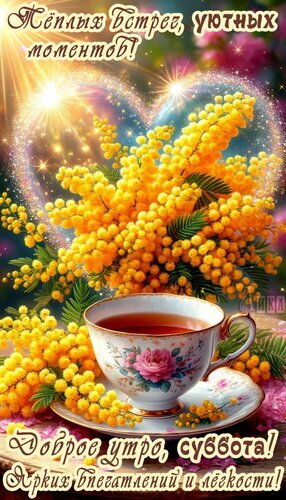 Теги:суббота, дни недели, чай, цветы, мимоза, сердечко, выходной, весна, красивая картинка, легкости, ярких впечатлений, приятных встреч